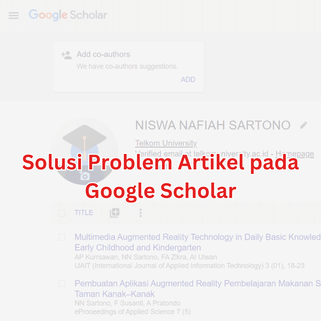 If there are any obstacles or problems related to repairing your Google Scholar account or articles and profile, you can submit a ticket via the website service desk. https://satu.telkomuniversity.ac.id